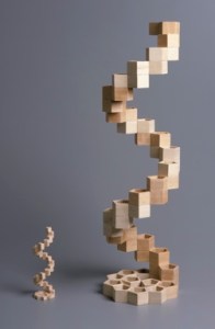 Curtis was driven to create this strange structure by his early attempts to draw some rough sketches of DNA. After many attempts, he found he couldn’t make sense of the two and three-dimensional representations he found in textbooks. They seemed to contradict one another. Frustration finally forced him back to what he refers to as “geometrical first principles”, and in the manner of Renaissance perspectival artists such as Paolo Uccello, he began by making careful scale drawings of DNA.